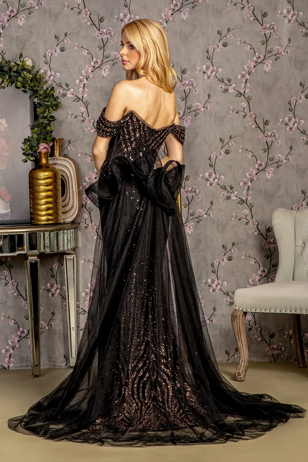 Metallic Sequin Mesh Mermaid Long Dress w/ Detachable Waist Drape